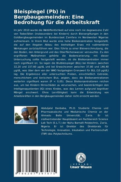 Im Jahr 2010 wurde die Weltöffentlichkeit auf eine noch nie dagewesene Zahl von Todesfällen (insbesondere bei Kindern) durch Bleivergiftungen in den Goldbergbaugemeinden im Bundesstaat Zamfara im Nordwesten Nigerias aufmerksam. In ihrem Blut wurde eine hohe Bleikonzentration festgestellt, die auf den illegalen Abbau des bleihaltigen Erzes mit rudimentären Werkzeugen zurückzuführen war. Dies führte zu einer Bleiverschmutzung, die den Boden, den Untergrund und das Oberflächenwasser verseuchte. Zu den ergriffenen Maßnahmen gehörte die Bodensanierung; mit dieser Untersuchung sollte festgestellt werden, ob die Bleikonzentration immer noch signifikant ist. So lagen die Blutbleispiegel (BLL) bei Kindern zwischen 32,20 und 157,60 µg/dL und bei Erwachsenen zwischen 37,80 und 146,40 µg/dL, was über dem von der WHO festgelegten Grenzwert für BLL (10 µg/dL) lag. Die Ergebnisse aller untersuchten Proben, einschließlich Getreide, menschlichem und tierischem Blut, zeigten, dass die Bleikonzentrationen weiterhin signifikant waren (P < 0,05). Diese Bleikonzentrationen reichen aus, um bei Kindern Hirnschäden zu verursachen, und beeinträchtigen den Intelligenzquotienten (IQ) eines Kindes, was das Lernen aufgrund kognitiver Mängel erschwert. Ohne Lernfähigkeit kann die Entwicklung von Arbeitskräften in den Bergbaugemeinden daher nicht erreicht werden.