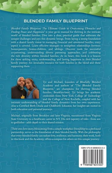 Tyi and Michael, authors of "The Blended Family Blueprint" and founders of Blissfully Blended Academy, are a power couple dedicated to fostering resilient and harmonious blended families. Their mission is to equip these families with practical strategies and a supportive community to enhance communication, understanding, and connection.Tyi, originally from Brooklyn, has a rich educational background with an Associate of Arts degree from New York College of Technology and a Bachelor of Sciences in Psychology from the College of New Rochelle. In addition to her roles as a daughter, sister, wife, and mom, she is also a Certified Birth Doula and Childbirth Educator. Having been part of blended families from a young age and through two marriages, she brings deep personal insights to their collective venture.Michael, a Brooklyn native raised in Queens and Fredericksburg, Virginia, holds a diverse portfolio of roles including son, brother, husband, uncle, godfather, and friend. After attending Virginia State University, he pursued a career in healthcare, providing him with invaluable practical knowledge.The couple's bond began at work, blossoming from a playful friendship into a profound partnership that forms the core of their blended family, endearingly referred to as "THISTHING". This unique journey has not only shaped their familial dynamics but also their commitment to supporting others navigating similar paths.Their Blissfully Blended Academy is a comprehensive platform aimed at empowering blended families with tools, resources, and a sense of community to navigate the complexities of blended family life. They believe that, with the right guidance, every blended family can become a symbol of love, resilience, and harmony. Through their book and academy, Tyi and Michael are passionately devoted to guiding blended families towards a fulfilling and blissful life.