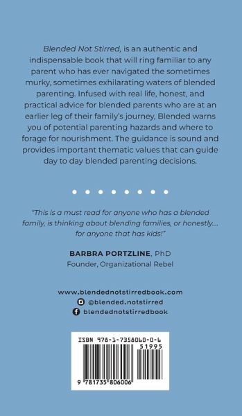 Blended Not Stirred, is an authentic and indispensable book that will ring familiar to any parent who has ever navigated the sometimes murky, sometimes exhilarating waters of blended parenting. Infused with real life, honest, and practical advice for blended parents who are at an earlier leg of their family's journey, Blended warns you of potential parenting hazards and where to forage for nourishment. The guidance is sound and provides important thematic values that can guide day to day blended parenting decisions.