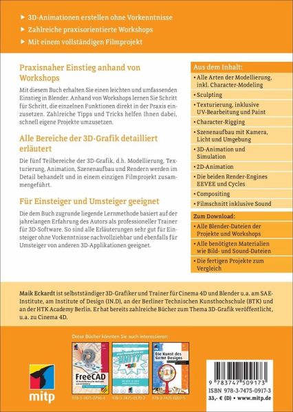 Mit diesem Buch erhalten Sie einen leichten und umfassenden Einstieg in Blender. Anhand von Workshops lernen Sie Schritt für Schritt, die einzelnen Funktionen direkt in der Praxis einzusetzen. Zahlreiche Tipps und Tricks helfen Ihnen dabei, schnell eigene Projekte umzusetzen.