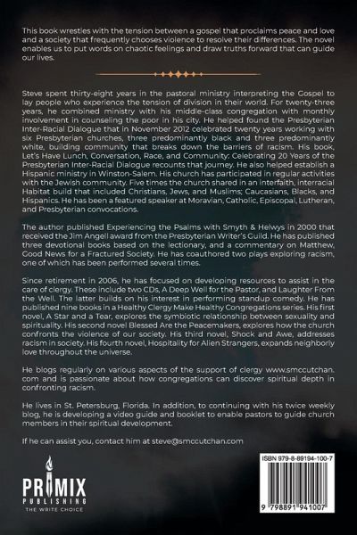 Biography for Steve McCutchansteve@smccutcacan Steve spent thirty-eight years in the pastoral ministry interpreting the Gospel to lay people who experience the tension of division in their world. For twenty-three years, he combined ministry with his middle-class congregation with monthly involvement in counseling the poor in his city. He helped found the Presbyterian Inter-Racial Dialogue that in November 2012 celebrated twenty years working with six Presbyterian churches, three predominantly black and three predominantly white, building cprimixommunity that breaks down the barriers of racism. His book, Let's Have Lunch, Conversation, Race, and Community: Celebrating 20 Years of the Presbyterian Inter-Racial Dialogue recounts that journey. He also helped establish a Hispanic ministry in Winston-Salem. His church has participated in regular activities with the Jewish community. Five times the church shared in an interfaith, interracial Habitat build that included Christians, Jews, and Muslims; Caucasians, Blacks, and Hispanics. He has been a featured speaker at Moravian, Catholic, Episcopal, Lutheran, and Presbyterian convocations.The author published Experiencing the Psalms with Smyth & Helwys in 2000 that received the Jim Angell award from the Presbyterian Writer's Guild. He has published three devotional books based on the lectionary, and a commentary on Matthew, Good News for a Fractured Society. He has coauthored two plays exploring racism, one of which has been performed several times. Since retirement in 2006, he has focused on developing resources to assist in the care of clergy. These include two CDs, A Deep Well for the Pastor, and Laughter From the Well. The latter builds on his interest in performing standup comedy. He has published nine books in a Healthy Clergy Make Healthy Congregations series. His first novel, A Star and a Tear, explores the symbiotic relationship between sexuality and spirituality. His second novel Blessed Are the Peacemakers, explores how the church confronts the violence of our society. His third novel, Shock and Awe, addresses violence in society. His fourth novel, Hospitality for Alien Strangers, expands neighborly love throughout the universe. He blogs regularly on various aspects of the support of clergy www.smccutchan.com and is passionate about how congregations can discover spiritual depth in confronting racism.He lives in St. Petersburg, Florida. In addition, to continuing with his twice weekly blog, he is developing a video guide and booklet to enable pastors to guide church members in their spiritual development. If he can assist you, contact him at steve@smccutchan.com