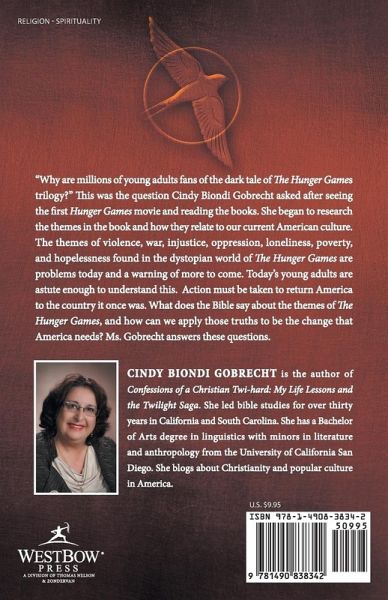 ?Why are millions of young adults fans of the dark tale of The Hunger Games trilogy?? This was the question Cindy Biondi Gobrecht asked after seeing the first Hunger Games movie and reading the books. She began to research the themes in the book and how they relate to our current American culture. The themes of violence, war, injustice, oppression, loneliness, poverty, and hopelessness found in the dystopian world of The Hunger Games are problems today and a warning of more to come. Today?s young adults are astute enough to understand this. Action must be taken to return America to the country it once was. What does the Bible say about the themes of The Hunger Games, and how can we apply those truths to be the change that America needs? Ms. Gobrecht answers these questions.