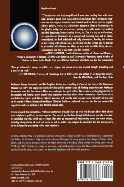 [These] essays are truly magnificent! I have been reading them with enormous pleasure, given their scope and depth and given how surprisingly resonant are our range of interests from classical music to Torah study to popular culture, politics, travel, etc. Jochnowitz's sojourn in China is fascinating as is his playful, witty, but very serious writing on a wide variety of matters including happiness, homosexuality, Israel, etc. This is a joy, so well written, so sophisticated. Jochnowitz is a learned and charming man and his ideas, reconsidered, are both delightful and truly informative. Reading this volume is like visiting with a Renaissance intellectual who has invited you for tea. He is as familiar with Chinese and China as he is with the Bible, Plato, Mozart, Shakespeare and Marx-and that's just for starters. -- Phyllis Chesler, Emerita Professor, Author of Women and Madness, Woman's Inhumanity to Woman, The New Anti-Semitism, and The Death of Feminism, B Topics are connected by the running theme of reconsiderations, the author's reflections and re-evaluations of his understanding of and relationship to the world about him...the ideas come together: the reconsider-ation of a New York Jewish liberal who realizes not before time that what he really values has to be preserved. Mentalities Jochnowitz, throughout the essays, is animated by the cool precision of logic...[His] essays are scintillating, amusing, and provocative. Midstream, February 2009 George Jochnowitz's essays on politics, art, religion, and human nature are original, thought-provoking, and a pleasure to read. -- Steven Pinker, Professor of Psychology, Harvard University, and author of The Language Instinct, How the Mind Works, and The Blank Slate