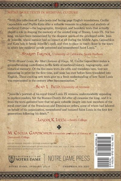 Louis IX, king of France from 1226 to 1270 and twice crusader, was canonized in 1297. He was the last king canonized during the medieval period, and was both one of the most important saints and one of the most important kings of the later Middle Ages. In Blessed Louis, the Most Glorious of Kings: Texts Relating to the Cult of Saint Louis of France, M. Cecilia Gaposchkin presents six previously untranslated texts that informed medieval views of St. Louis IX: two little-known but early and important vitae of Saint Louis; two unedited sermons by the Parisian preacher Jacob of Lausanne (d. 1322); and a liturgical office and proper mass in his honor-the most commonly used liturgical texts composed for Louis' feast day-which were widely copied, read, and disseminated in the Middle Ages. Gaposchkin's aim is to present to a diverse readership the Louis as he was known and experienced in the Middle Ages: a saint celebrated by the faithful for his virtue and his deeds. She offers for the first time to English readers a typical hagiographical view of Saint Louis, one in counterbalance to that set forth in Jean of Joinville's Life of Saint Louis. Although Joinville's Life has dominated our views of Louis, Joinville's famous account was virtually unknown beyond the French royal court in the Middle Ages and was not printed until the sixteenth century. His portrayal of Louis as an individual and deeply charismatic personality is remarkable, but it is fundamentally unrepresentative of the medieval understanding of Louis. The texts that Gaposchkin translates give immediate access to the reasons why medieval Christians took Louis to be a saint; the texts, and the image of Saint Louis presented in them, she argues, must be understood within the context of the developing history of sanctity and sainthood at the end of the Middle Ages. "With Blessed Louis, the Most Glorious of Kings, M. Cecilia Gaposchkin makes a ground-breaking contribution to the fields of medieval history, hagiography, and historical memory. Of the five main texts she edits and translates here, four are appearing in print for the first time, and none has ever before been translated into English. These exciting new texts give us a fresh understanding of how St. Louis was represented in the century after his canonization." --Sean L. Field, University of Vermont