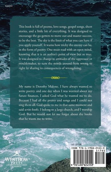 This book is full of poems, love songs, gospel songs, short stories, and a little bit of everything. It was designed to encourage the go-getters to move out and master success, to be the best. The sky is the limit of what you can have if you apply yourself. It warns how tricky the enemy can be, in the form of poetry. One must read with an open mind, knowing that it is an author's point of view but so true. It was designed to change to attitudes of the oppressor or troublemaker, to turn the minds around from wrong to right by sharing to consequences of wrongdoing.
