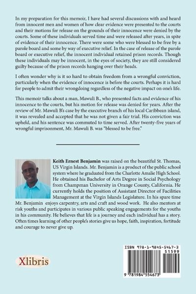 In my preparation for this memoir, I have had several discussions with and heard from innocent men and women of how clear evidence were presented to the courts and their motions for release on the grounds of their innocence were denied by the courts. Some of these individuals served time and were released after years, in spite of evidence of their innocence. There were some who were blessed to be free by a parole board and some by way of executive relief. In the case of release of the parole board or executive relief, the innocent individual retained prison records. Though these individuals may be innocent, in the eyes of society, they are still considered guilty because of the prison records hanging over their heads. I often wonder why is it so hard to obtain freedom from a wrongful conviction, particularly when the evidence of innocence is before the courts. Perhaps it is hard for people to admit their wrongdoing regardless of the negative impact on one's life. This memoir talks about a man, Mawuli B., who presented facts and evidence of his innocence to the courts, but his motion for release was denied for years. After the review of Mr. Mawuli B's case by the executive branch of his local Caribbean island, it was revealed and accepted that he was not given a fair trial. His conviction was upheld, and his sentence was commuted to time served. After twenty-five years of wrongful imprisonment, Mr. Mawuli B. was "blessed to be free."