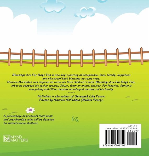 Blessings Are For Dogs Too is one dog's journey of acceptance, love, family, happiness and the proof that blessings do come true. Maurice McFadden was inspired to write his first children's book, Blessings Are For Dogs Too, after he adopted his cocker spaniel, Oliver, from an animal shelter. For Maurice, family is everything and Oliver became an integral member of his family. A percentage of proceeds from the book and merchandise will be donated to animal rescue shelters.