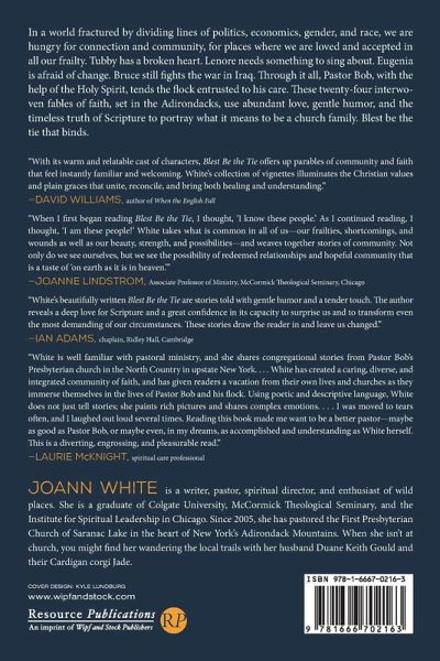 In a world fractured by dividing lines of politics, economics, gender, and race, we are hungry for connection and community, for places where we are loved and accepted in all our frailty. Tubby has a broken heart. Lenore needs something to sing about. Eugenia is afraid of change. Bruce still fights the war in Iraq. Through it all, Pastor Bob, with the help of the Holy Spirit, tends the flock entrusted to his care. These twenty-four interwoven fables of faith, set in the Adirondacks, use abundant love, gentle humor, and the timeless truth of Scripture to portray what it means to be a church family. Blest be the tie that binds.