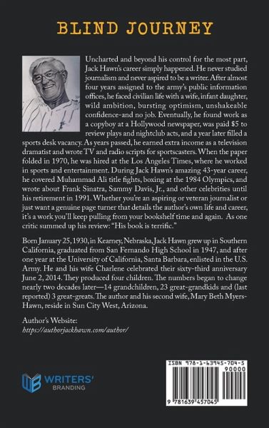 Uncharted and beyond his control for the most part, Jack Hawn's career simply happened. He never studied journalism and never aspired to be a writer. After almost four years assigned to the army's public information offices, he faced civilian life with a wife, infant daughter, wild ambition, bursting optimism, unshakeable confidence-and no job. Eventually, he found work as a copyboy at a Hollywood newspaper, was paid $5 to review plays and nightclub acts, and a year later filled a sports desk vacancy. As years passed, he earned extra income as a television dramatist and wrote TV and radio scripts for sportscasters. When the paper folded in 1970, he was hired at the Los Angeles Times, where he worked in sports and entertainment. During Jack Hawn's amazing 43-year career, he covered Muhammad Ali title fights, boxing at the 1984 Olympics, and wrote about Frank Sinatra, Sammy Davis, Jr., and other celebrities until his retirement in 1991. Whether you're an aspiring or veteran journalist or just want a genuine page turner that details the author's own life and career, it's a work you'll keep pulling from your bookshelf time and again. As one critic summed up his review: "His book is terrific."Born January 25, 1930, in Kearney, Nebraska, Jack Hawn grew up in Southern California, graduated from San Fernando High School in 1947, and after one year at the University of California, Santa Barbara, enlisted in the U.S. Army. He and his wife Charlene celebrated their sixty-third anniversary June 2, 2014. They produced four children. The numbers began to change nearly two decades later-14 grandchildren, 23 great-grandkids and (last reported) 3 great-greats. The author and his second wife, Mary Beth Myers-Hawn, reside in Sun City West, Arizona.Author's Website:https://authorjackhawn.com/author