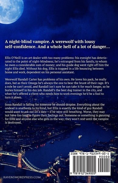 A night-blind vampire. A werewolf with lousy self-confidence. And a whole hell of a lot of danger… Ellis O’Neill is an art dealer with too many problems: his eyesight has deteriorated to the point of night-blindness; he’s estranged from his family, to whom he owes a considerable sum of money; and his guide dog went right off him the night Ellis died. Without his dog, Ellis is trapped in a life bouncing between home and work, dependent on his personal assistant. Werewolf Randall Carter has problems of his own. He loves his pack, he really does, but as their Omega he’s always the one to bear the brunt of their rage. It’s a role he can’t avoid, and Randall isn't sure he can take it for much longer, so he buries himself in his day job. Randall’s the best dog trainer in the city, and when he’s offered a client who needs him to work evenings he’d be a fool to turn it down. Soon Randall is falling for someone he should despise. Everything about the undead is anathema to his kind, but Ellis is exactly the kind of guy Randall would want to ask out on a date – if he were still breathing. Worse, they may not have too long to figure their feelings out. Someone or something is gunning for Ellis and anyone else who gets in the way; they won’t rest until the vampire is destroyed.