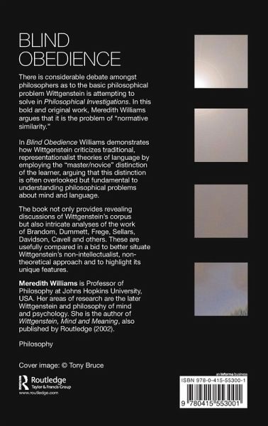 In Blind Obedience Williams demonstrates how Wittgenstein criticizes traditional, representationalist theories of language by employing the 'master/novice' distinction of the learner, arguing that this distinction is often overlooked but fundamental to understanding philosophical problems about mind and language.