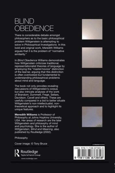 In Blind Obedience Williams demonstrates how Wittgenstein criticizes traditional, representationalist theories of language by employing the 'master/novice' distinction of the learner, arguing that this distinction is often overlooked but fundamental to understanding philosophical problems about mind and language.