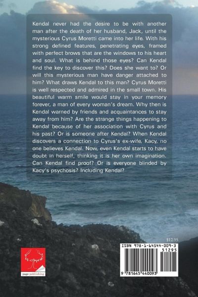 Kendal never had the desire to be with another man after the death of her husband, Jack, until the mysterious Cyrus Moretti came into her life. With his strong defined features, penetrating eyes, framed with perfect brows that are the windows to his heart and soul. What is behind those eyes? Can Kendal find the key to discover this? Does she want to? Or will this mysterious man have danger attached to him? What draws Kendal to this man? Cyrus Moretti is well respected and admired in the small town. His beautiful warm smile would stay in your memory forever, a man of every woman's dream. Why then is Kendal warned by friends and acquaintances to stay away from him? Are the strange things happening to Kendal because of her association with Cyrus and his past? Or is someone after Kendal? When Kendal discovers a connection to Cyrus's ex-wife, Kacy, no one believes Kendal. Now, even Kendal starts to have doubt in herself, thinking it is her own imagination. Can Kendal find proof? Or is everyone blinded by Kacy's psychosis? Including Kendal?