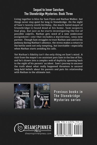 Sequel to Inner SanctumThe Stonebridge Mysteries: Book Three Living together is bliss for Sam Flynn and Nathan Walker, but things never stay quiet for long in Stonebridge. On the night of Sam's twenty-ninth birthday, the much-hated mayor of Stonebridge is found dead at his home. Sam suspects foul play, but just as he starts investigating the list of possible culprits, Nathan gets word of a new undercover assignment-one that includes a mysterious, sexy new partner. Though Sam struggles to trust Nathan and control his jealousy during Nathan's absence, the stress makes a return to the bottle seem not only tempting, but inevitable-especially when Nathan starts avoiding his calls. Yet Nathan's fidelity isn't the only thing on Sam's mind. A visit from the mayor's ex-assistant puts Sam in the line of fire, and he's drawn into a complex web of duplicity spanning back to the night of his parents' accident. Sam's journey to uncover the truth about what really happened threatens to unravel long-held beliefs about his parents and puts his relationship with Nathan to the ultimate test.