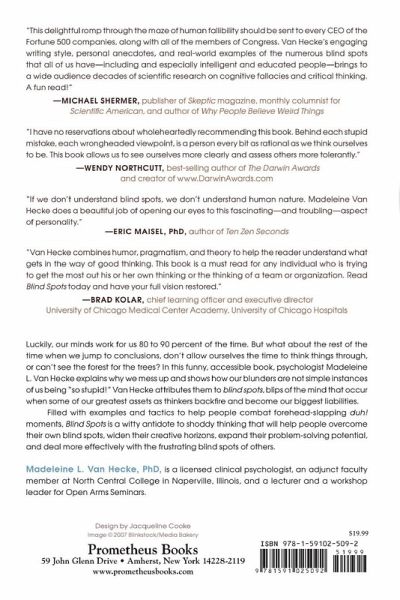 A woman planning a dinner party calls a gourmet caterer and learns that "Chateaubriand" can be ordered. To which she responds, "No, thanks. We're going to take care of the wine ourselves." The dead silence at the end of the phone is her first clue that something is amiss. A CEO attempts to put an end to complaints from employees about the demeaning behavior of certain managers by berating the managers before the staff - thus reinforcing the very behavior he's trying to correct. We often criticize such incidents with remarks like "How dumb!" or "What was he thinking?" But psychologist Madeleine L. Van Hecke argues that much of what we label stupidity can better be explained as blind spots. Just as the blind spot in the driver's side mirror can swallow up a passing car, patterns in the way we think can likewise become blind spots, sifting out information and observations that to other people seem obvious. Drawing on research in creativity, cognitive psychology, critical thinking, child development, education, and philosophy, Dr. Van Hecke shows how our assets as thinkers create the very blind spots that become our worst liabilities. She devotes a chapter to each of ten mental blind spots that afflict even the smartest people: not stopping to think, jumping to conclusions, my-side bias, getting trapped by categories, and much more. At the end of each chapter she offers tactics for overcoming that specific blind spot, so we can become more creative and competent thinkers.Full of funny, poignant stories about human foibles, Blind Spots offers many insights for improving our social and political lives while giving us fresh slants into the minds of people who are poles apart from ourselves.