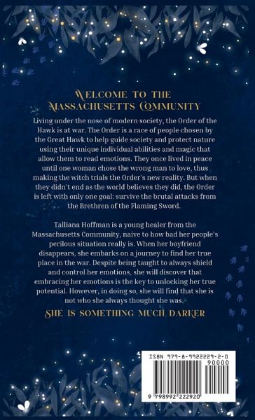 A fast-paced new adult urban romantasy with a unique magic system, mythical creatures, a strong community family, spice, a chosen one, battle scenes, uncovered secrets, light vs. dark, and "who hurt you?". Welcome to the Massachusetts Community. Living under the nose of modern society, The Order of the Hawk is at war. The Order is a race of people chosen by the Great Hawk to help guide society and protect nature using their unique individual abilities and magic that allow them to read emotions. They once lived in peace until one woman chose the wrong man to love, thus making the witch trials The Order's new reality. But when they didn't end as the world believes they did, The Order is left with only one goal: survive the brutal attacks from the Brethren of the Flaming Sword. Talliana Hoffman is a young healer from the Massachusetts Community, naive to how bad her people's perilous situation really is. When her boyfriend disappears, she embarks on a journey to find her true place in the war. Despite being taught to always shield and control her emotions, she will discover that embracing her emotions is the key to unlocking her true potential. However, in doing so, she will find that she is not who she always thought she was. She is something much darker. **Authors Note** Thank you for your interest in Blind Thoughts! This trilogy takes place in an urban setting and addresses many modern issues throughout each book. I believe in the importance of providing a warning in case any of the below topics can be triggering to you, the reader. Content Warnings: explicit language, descriptive sex scenes, violence and mention of torture, death of parents and loved ones in a tragic situation, brief mention of infertility, characters that deal with Anxiety and PTSD, and high School bullying.