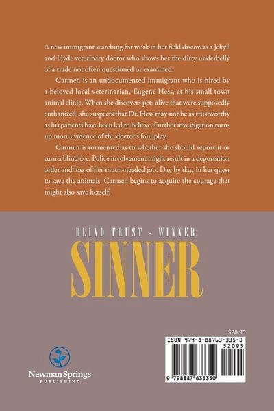 A new immigrant searching for work in her field discovers a Jekyll and Hyde veterinary doctor who shows her the dirty underbelly of a trade not often questioned or examined. Carmen is an undocumented immigrant who is hired by a beloved local veterinarian, Eugene Hess, at his small town animal clinic. When she discovers pets alive that were supposedly euthanized, she suspects that Dr. Hess may not be as trustworthy as his patients have been led to believe. Further investigation turns up more evidence of the doctor's foul play. Carmen is tormented as to whether she should report it or turn a blind eye. Police involvement might result in a deportation order and loss of her much-needed job. Day by day, in her quest to save the animals, Carmen begins to acquire the courage that might also save herself."