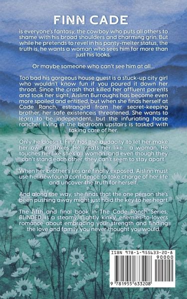 From Internationally Bestselling Small-town Western Romance author, Greta Rose West, comes the special edition of the fifth book in The Cade Ranch Series, Blinded, in its glossy alternative cover... Finn Cade is everyone's fantasy, the cowboy who puts all others to shame with his broad shoulders and charming grin. But while he pretends to revel in his panty-melter status, the truth is, he wants a woman who sees him for more than just his looks. Or maybe someone who can't see him at all... Too bad his gorgeous house guest is a stuck-up city girl who wouldn't know fun if you poured it down her throat. Since the crash that killed her affluent parents and took her sight, Aislinn Burroughs has become even more spoiled and entitled, but when she finds herself at Cade Ranch, estranged from her secret-keeping brother, her safe existence is threatened. She wants to learn to be independent, but the infuriating horse rancher living in the bedroom upstairs is tasked with taking care of her. Only he doesn't. Finn has the audacity to let her make her own mistakes. He treats her like... a woman. He touches her like she's all woman, and even though they can't stand each other, they can't seem to stay apart. When her brother's lies are finally exposed, Aislinn must use her newfound confidence to take charge of her life and uncover the truth for herself. And along the way, she finds that the one person she's been pushing away might just hold the key to her heart. The fifth and final book in The Cade Ranch Series, Blinded, is a steamy, slightly kinky, enemies-to-lovers romance about embracing your strength and finding the love and family you never thought you would. Trigger Warnings: Adult language and situations. There is a little kink and a lot of STEAM, and always an HEA. 18+ Readers The Cade Ranch Series in Order: Burned Broken Busted Braved Blinded