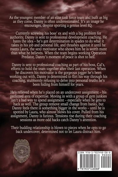 As the youngest member of an elite task force team and built as big as they come, Danny is often underestimated. It's an image he encourages, despite sporting a genius level IQ. Currently screwing his boss' ex and with a big problem for authority, Danny is sent to professional development coaching. He hates the idea - he's got determination in spades to do what it takes in his job and personal life, and thrashes against it until he meets Laura, the sexy motivator who shows him he is worth more than what he believes. When the team begins working Operation Predator, Danny's moment of peace is shot to hell. Danny is sent to professional coaching as part of his boss, Cal's, efforts to hold the team together after their last operation. When he discovers his motivator is the gorgeous jogger he's been working out with, Danny is determined to flirt his way through his coaching, stubbornly refusing to delve into personal truths he's been hiding from himself for years. He's relieved when he's placed on an undercover assignment - his preferred area of expertise. Moving in with a group of gym junkies isn't a bad way to spend assignment - especially when he gets to hack as well. The group remove small change from banks, but Danny feels there is something bigger in the works - until he is spotted by Laura, who almost blows his cover. Pulled from his assignment, Danny is furious. Tensions rise during their coaching sessions as more odd hacks catch Danny's attention. Their budding relationship is blown to pieces when he opts to go back undercover, determined not to let Laura distract him.
