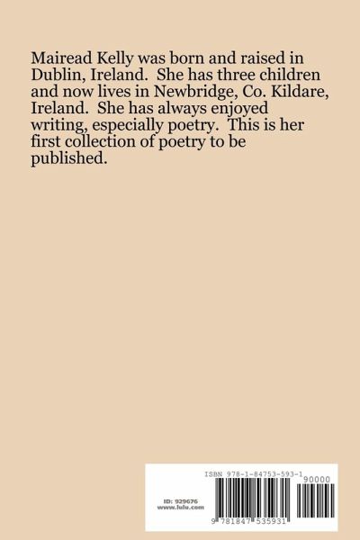 This is a book of poetry by an Irish woman. It is a reflection on her thoughts, reactions, and day to day observations of her life and the lives of people she has come in contact with.
