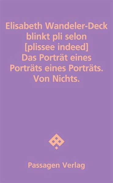 blinkt pli selon [plissee indeed] versteht sich als lyrische Auseinandersetzung mit pli selon pli von Pierre Boulez. Wenn Stéphane Mallarmés Gedichte, selber schon als Porträts verstanden, die Grundlage der Boulez'schen Komposition bilden, kann das vorliegende Langgedicht von Elisabeth Wandeler-Deck - "pli selon pli selon"- als Porträt eines Porträts eines Porträts verstanden werden. Falz um Falte, Falte um Stoffstreif breitet sich der Text aus. Zerfasert sich, wird zum Textfeld, zum Gedicht, wird infiziert von anderen Texten, von Boulez und, über den Umweg von Boulez, von Mallarmé. blinkt pli selon [plissee indeed] ist ein Porträt von Nichts, von Lust und Begehren. Es ist die dritte Veröffentlichung von Elisabeth Wandeler-Deck im Passagen Verlag.