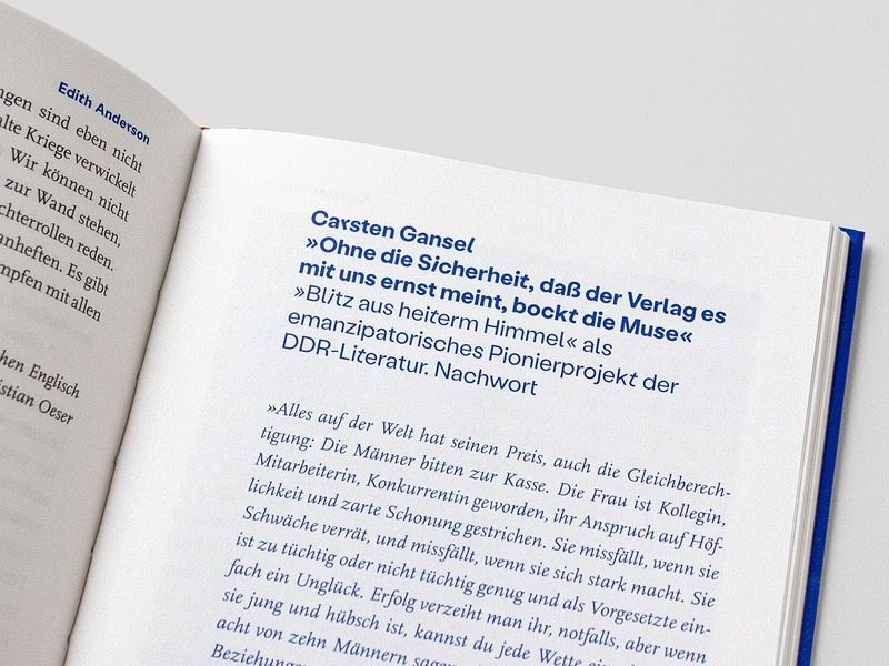 Edith Andersons Idee, Autorinnen und Autoren zu Geschichten über Geschlechtertausch anzuregen, hatte ihren Ausgangspunkt in der »Ungerechtigkeit, über die eine Frau jeden Tag ihres Lebens stolpert« - auch in der DDR, die sich die Emanzipation auf ihre Fahnen geschrieben hatte. Was würden die literarischen Repliken über die Kluft zwischen Anspruch und Wirklichkeit verraten? Die Funktionäre waren alarmiert: Sie sabotierten die Initiatorin mit falschen Vorwürfen, die an Rufmord grenzten. Beinahe wäre das Projekt im Keim erstickt worden. Die Anthologie aber konnte schließlich, dank der Unterstützung des Schriftstellerverbandes und nach einem fünf Jahre währenden Aufbegehren aller Beteiligten, erscheinen. Sie demonstriert eindrücklich die einzigartige, der Literatur innewohnende Kraft, wenn es darum geht, Zukunftsvisionen zu entwerfen.