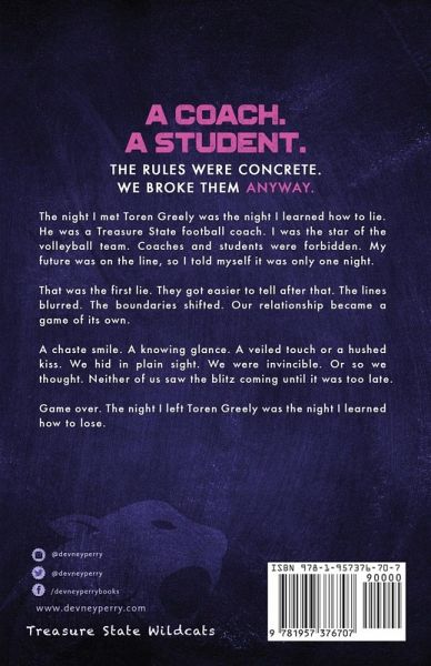 A coach. A student. The rules were concrete. We broke them anyway. The night I met Toren Greely was the night I learned how to lie. He was a Treasure State football coach. I was the star of the volleyball team. Coaches and students were forbidden. My future was on the line, so I told myself it was only one night. That was the first lie. They got easier to tell after that. The lines blurred. The boundaries shifted. Our relationship became a game of its own. A chaste smile. A knowing glance. A veiled touch or a hushed kiss. We hid in plain sight. We were invincible. Or so we thought. Neither of us saw the blitz coming until it was too late. Game over. The night I left Toren Greely was the night I learned how to lose.