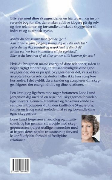 "Bliv ven med dine skyggesider" er en hjertevarm og inspirerende bog for alle, der ønsker at blive klogere på sig selv og sine relationer, og forvandle uønskede skyggesider til indre ro og autentisk styrke. Møder du den samme type igen og igen? Kan dit barn gang på gang bringe dig op i det røde felt? Føler du dig ikke værdsat og respekteret af din chef? Er din partner bare indimellem alt for egoistisk? Eller er du bare træt af, at dine venner altid kommer for sent? Hvis du bruger en masse energi på dine relationer, uden at noget rigtigt ændrer sig, er det sandsynligvis dine egne skyggesider, der er på spil. Skyggesider er det, vi ikke kan acceptere hos os selv, og derfor heller ikke kan acceptere hos andre. I det øjeblik du erkender og accepterer din skygge, frigøres der energi i dit liv og dine relationer. I en kærlig og ligefrem tone tager forfatteren Lone Lund Jørgensen dig med på en rejse ind i kyggernes forunderlige univers. Gennem autentiske og tankevækkende eksempler introduceres du til den kraftfulde Skyggeproces, som er en let og enkel metode til at se og forvandle dine egne skyggesider.
