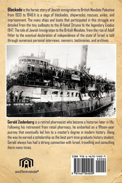 Blockade is the heroic story of Jewish immigration to British Mandate Palestine from 1933 to 1948.It is a saga of blockades, shipwrecks, rescues, exiles, and imprisonment. The many ships and boats that participated in this struggle are detailed from the tiny sailboats to the ill fated Struma to the legendary Exodus 1947. The tale of Jewish Immigration to the British Mandate, from the rise of Adolf Hitler to the eventual declaration of independence of the state of Israel is told through numerous personal interviews, memoirs, testimonies, and archives.