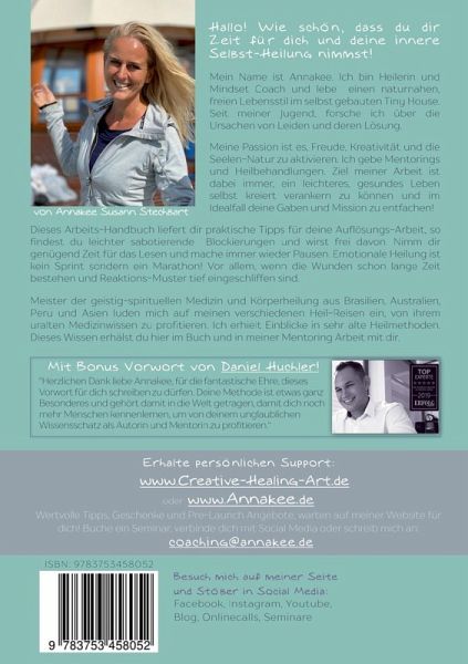 Dieses Arbeitshandbuch zeigt der Leserin in 5 Phasen der Blockade Heilarbeit, wie man es schafft, sabotierende Blockade-Programme selbst wahrzunehmen, eindeutig zu benennen und schliesslich neuen Umgang damit zu finden. Das Buch unterstützt dabei, sabotierende Muster selbst auflösen zu können, um wieder mehr Freude, Leichtigkeit und Selbstwert zu erleben. Blockadefrei bietet der Leserin die Essenz der 24 jährigen Heilsuche von Annakee, mit vielen Erkenntnissen aus ihrer Arbeit, zusammen mit ihren Kunden. Das Buch bietet auch wertvolle Alltags-Tipps mit einer Schritt für Schritt Anleitung zur Auflösung von Blockaden, um störende Verhaltensmuster, bis in die tiefen Schichten hinein, aufzulösen. Emotionale Heilung ist kein Sprint sondern ein Marathon! Vor allem, wenn die Wunden schon lange Zeit bestehen und Reaktions-Muster tief eingeschliffen sind. Schritt für Schritt begleitet es die Leserin in ein umfassendes Verständnis ihrer Lebenssituation, schärft das Bemerken von eingeschliffenen Reaktionsmustern und blinden Flecken, um sich selbst aus all den unliebsamen Verstrickungen befreien zu können. Der Leserin wird dadurch mehr Lebensqualität, Verankerung mit dem inneren Zentrum und Entscheidungskraft für zukünftige Handlungen, werden dadurch dem übenden Leser ermöglicht! Als Bonus gibt es das Vorwort von meinen Mentor & Coach Daniel Huchler, Erfolgs Experte!