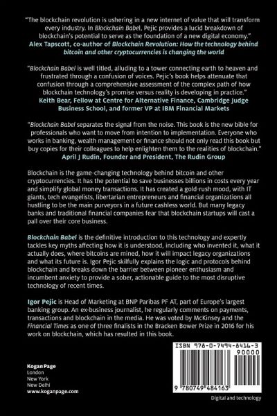 "The blockchain revolution is ushering in a new internet of value that will transform every industry. In Blockchain Babel, Pejic provides a lucid breakdown of blockchain's potential to serve as the foundation of a new digital economy." Alex Tapscott, co-author, Blockchain Revolution: How the Technology Behind Bitcoin and Other Cryptocurrencies is Changing the World