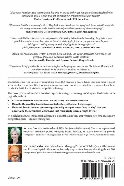 Blockchain is moving into a new competitive phase that requires a clearer future view and more focused strategies for competing. Whether you are an entrepreneur, investor, or established company, learn how to win the battle for blockchain competitive advantage.This book provides clear advice from two experts in strategy, technology investing and blockchain. In its pages the authors: Establish a vision of the future and the big issues that need to be solved Describe the enabling innovations and technologies that may be leveraged Show you how to develop your strategy—making sure you have a "way to play," that you understand the key success factors, and that you quickly secure a "right to win." In blockchain a few of the leaders have begun to do just this, and they are preparing now for a much more competitive game—which is coming fast.