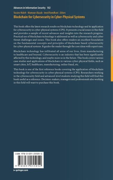 This book is one of the first reference books covering the application of blockchain technology for cybersecurity in cyber-physical systems (CPS). Researchers working in the cybersecurity field and advanced-level students studying this field will find this book useful as a reference. Decision-makers, managers and professionals also working in this field will want to purchase this book.