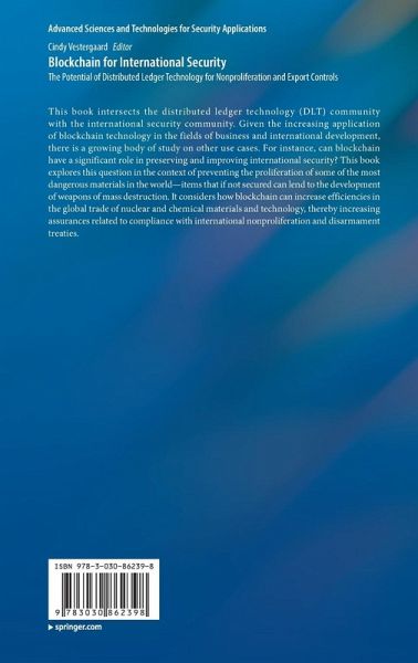 This book intersects the distributed ledger technology (DLT) community with the international security community. Given the increasing application of blockchain technology in the fields of business and international development, there is a growing body of study on other use cases. For instance, can blockchain have a significant role in preserving and improving international security? This book explores this question in the context of preventing the proliferation of some of the most dangerous materials in the world-items that if not secured can lend to the development of weapons of mass destruction. It considers how blockchain can increase efficiencies in the global trade of nuclear and chemical materials and technology, thereby increasing assurances related to compliance with international nonproliferation and disarmament treaties.