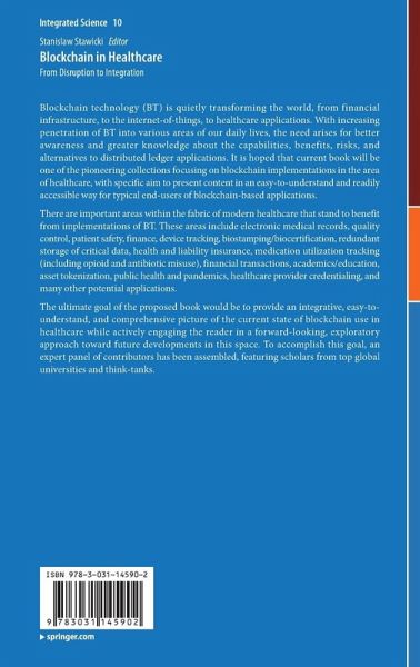Blockchain technology (BT) is quietly transforming the world, from financial infrastructure, to the internet-of-things, to healthcare applications. With increasing penetration of BT into various areas of our daily lives, the need arises for better awareness and greater knowledge about the capabilities, benefits, risks, and alternatives to distributed ledger applications. It is hoped that current book will be one of the pioneering collections focusing on blockchain implementations in the area of healthcare, with specific aim to present content in an easy-to-understand and readily accessible way for typical end-users of blockchain-based applications. There are important areas within the fabric of modern healthcare that stand to benefit from implementations of BT. These areas include electronic medical records, quality control, patient safety, finance, device tracking, biostamping/biocertification, redundant storage of critical data, health and liability insurance, medication utilization tracking (including opioid and antibiotic misuse), financial transactions, academics/education, asset tokenization, public health and pandemics, healthcare provider credentialing, and many other potential applications. The ultimate goal of the proposed book would be to provide an integrative, easy-to-understand, and comprehensive picture of the current state of blockchain use in healthcare while actively engaging the reader in a forward-looking, exploratory approach toward future developments in this space. To accomplish this goal, an expert panel of contributors has been assembled, featuring scholars from top global universities and think-tanks.