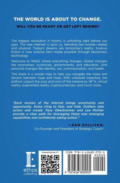 The World Is About to Change. Will You Be Ready or Get Left Behind? The biggest revolution in history is unfolding right before our eyes. The new internet is upon us, blending two worlds-digital and physical. Today's dreams are tomorrow's reality. Science fiction is now science fact-made possible through blockchain technology. Welcome to Web3, where everything changes. Global changes like economies, currencies, governments, and education. And personal changes like identity, sex, communication, and health. This book is a simple map to help you navigate the noise and discern between hype and hope. With unbiased expertise, the authors unpack the pros and cons of the metaverse, NFTs, virtual reality, augmented reality, cryptocurrencies, and much more. Discover how to: * Save time by identifying practical use cases for cutting-edge technology. * Create unending wealth by turning your ideas into protected digital assets. * Stay relevant by developing a customized metaverse strategy. * Decide what technology to accept or reject by integrating your values. Learn the facts. Leverage the knowledge. Create your bigger and better future, starting today.
