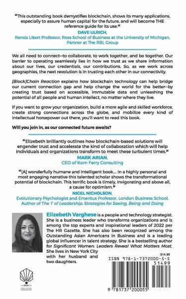 "In her ground-breaking new book, Elizebeth calls on leaders and talent evangelists to usher in a new age of connection and collaboration. Insightful and easily understood, this book will help you thrive." -MARSHALL GOLDSMITH, New York Times #1 Bestselling Author of Triggers, Mojo, and What Got You Here Won't Get You There Humanity's biggest need is to connect. This will become particularly important as we use more technology and explore other planets in the future. If we move forward without keeping connection at our core, progress will be impeded and large segments of the population will be left behind. This book explains how AI in general, and blockchain in particular, can bridge our connection gap and help change the world for the better-by creating strong bonds of trust and unleashing the potential of all people, no matter where they live. Author Elizebeth Varghese starts off by explaining what blockchain really is, so those new to this technology can build a solid understanding before then diving into its greater potential as the new frontier of human connection. With this foundation built, she then moves on to explain the ways in which blockchain can be used to solve a number of problems, many of which will only grow with time, like supply and demand issues and issues with financial transactions that cross the globe. Varghese then moves onto what she sees as perhaps one of the greatest benefits of blockchain: its ability to create a new level of global trust based on accessible, immutable data. This new type of trust will become increasingly important as we continue to work across geographical boundaries. Varghese dives into great detail about the many benefits of blockchain, including how it:Recruits talent more efficiently and brings more diversity to the workplace Allows for speedy connections to skills and talents needed by today's organizations to succeed and grow sustainably Helps with various HR matters such as employee payroll, benefits administration, and insurance Lends itself to the gig economy and working with distributed teams Can help create, verify, and protect the digital passports and digital resumes that will be so critical in the near future Will call for a new type of leadership based on relationships and trust If the growth of your business depends on people, you'll want to read this book. If you want to create a more diverse workforce, both of people and of skills, you'll want to read this book. If you are ready to mobilize every kind of intellectual horsepower and create strong connections across the globe, then yes, you'll want to read this book. As Varghese asserts in the closing of the book, "Blockchain, when deployed with integrity and good governance, has the potential to help us operate seamlessly with trust-across our communities, our world and our universe." ¿We all need to connect-to collaborate, to work together, and be together. Our barrier to operating seamlessly lies in how we trust as we share information about our lives, our credentials, our contributions. So, as we work across geographies, the next revolution is in trusting each other in our connectivity. Will you join in, as our connected future awaits?