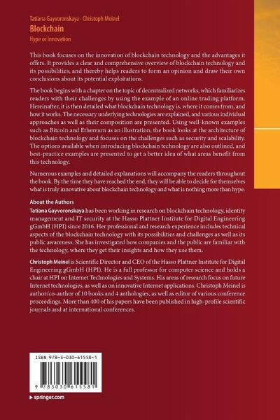 This book focuses on the innovation of blockchain technology and the advantages it offers. It provides a clear and comprehensive overview of blockchain technology and its possibilities, and thereby helps readers to form an opinion and draw their own conclusions about its potential exploitations.