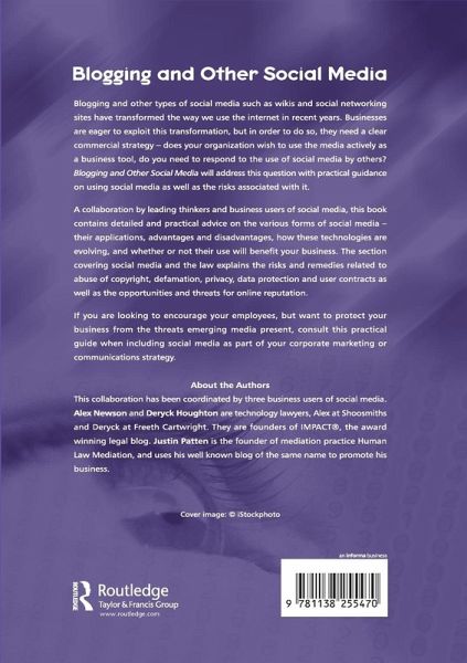 Blogging and other types of social media such as wikis and social networking sites have transformed the way we use the internet in recent years. It is a transformation that business is eager to exploit. In order to do so, a clear commercial strategy needs to be established; does your organization wish to use the media actively as a business tool, or do you need to respond to the use of social media by others? Blogging and Other Social Media will address this question with practical guidance on using social media as well as the risks associated with it. A collaboration by leading thinkers and business users of social media, the book contains detailed and practical advice on the various forms of social media - their applications, advantages and disadvantages, how these technologies are evolving, and whether or not their use will benefit your business. The section covering social media and the law explains the risks and remedies related to abuse of copyright, defamation, privacy, data protection and user contracts as well as the opportunities and threats for online reputation. If you are looking to encourage your employees but want to protect your business from the threats this emerging media presents, get a copy of this practical guide and study it before you start including social media as part of your corporate marketing or communications strategy.