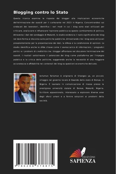 Questa ricerca esamina le risposte dei blogger alle implicazioni economiche dell'eliminazione dei sussidi per il carburante nel 2023 in Nigeria. Concentrandosi sui sindacati dei lavoratori, identifica i vari modi in cui i blog sono stati utilizzati per criticare, analizzare e influenzare l'opinione pubblica su questo cambiamento di politica. Attraverso i dati del sondaggio di Makurdi, lo studio evidenzia il ruolo significativo dei blog nel dare forma al discorso sulle politiche pubbliche, dimostrando che i blog sono utilizzati prevalentemente per la presentazione dei dati, la difesa e la condivisione di opinioni. Lo studio identifica anche le sfide chiave come il sovraccarico di informazioni, i pregiudizi politici e i problemi di credibilità che i blogger affrontano nel discutere l'eliminazione dei sussidi. I risultati sottolineano il potenziale dei blog come piattaforma per l'impegno pubblico e la critica delle politiche, suggerendo anche la necessità di una maggiore accuratezza e affidabilità nei contenuti dei blog su questioni economiche delicate.