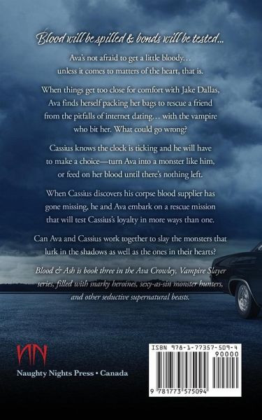 Blood will be spilled & bonds will be tested... Ava's not afraid to get a little bloody... unless it comes to matters of the heart, that is. When things get too close for comfort with Jake Dallas, Ava finds herself packing her bags to rescue a friend from the pitfalls of internet dating... with the vampire who bit her. What could go wrong? Cassius knows the clock is ticking and he will have to make a choice-turn Ava into a monster like him, or feed on her blood until there's nothing left. When Cassius discovers his corpse blood supplier has gone missing, he and Ava embark on a rescue mission that will test Cassius's loyalty in more ways than one. Can Ava and Cassius work together to slay the monsters that lurk in the shadows as well as the ones in their hearts? Blood & Ash is book three in the Ava Crowley, Vampire Slayer series, filled with snarky heroines, sexy-as-sin monster hunters, and other seductive supernatural beasts.
