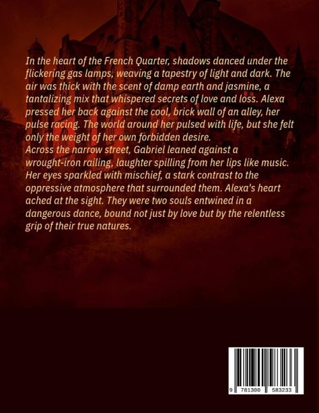 In the heart of the French Quarter, shadows danced under the flickering gas lamps, weaving a tapestry of light and dark. The air was thick with the scent of damp earth and jasmine, a tantalizing mix that whispered secrets of love and loss. Alexa pressed her back against the cool, brick wall of an alley, her pulse racing. The world around her pulsed with life, but she felt only the weight of her own forbidden desire. Across the narrow street, Gabriel leaned against a wrought-iron railing, laughter spilling from her lips like music. Her eyes sparkled with mischief, a stark contrast to the oppressive atmosphere that surrounded them. Alexa's heart ached at the sight. They were two souls entwined in a dangerous dance, bound not just by love but by the relentless grip of their true natures. "Meet me at midnight," Gabriel called, her voice a siren's song. It was a simple invitation, yet it carried the weight of a thousand stolen moments. Every heartbeat echoed the risk. In this city of enchantment, love was a luxury neither could afford. They were vampires, cursed to roam the earth in search of blood, but it was their hearts that craved the forbidden. As the night deepened, Alexa pondered the cost of their love. Each glance shared was a promise that danced just out of reach. The world around them would never accept what they had. Society's judgment loomed like a storm cloud, threatening to shatter their fragile connection. The moon hung low, casting a silver glow. It illuminated the path ahead but also the darkness lurking beneath. Alexa felt the pull of the night, the thrill of the chase, but it was Gabriel's laughter that anchored her. They had to be cautious. The city held eyes that would judge, but their hearts were already entwined, and the stakes had never been higher. As the clock struck twelve, Alexa slipped into the night, aware that their love could lead to salvation or destruction. She was ready to risk it all. In the shadows of New Orleans, two hearts beat as one, defying the darkness that sought to keep them apart.