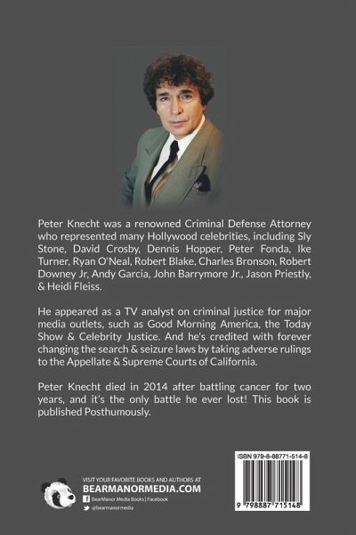Peter Knecht was a renowned Criminal Defense Attorney who represented many Hollywood celebrities, including Sly Stone, David Crosby, Dennis Hopper, Peter Fonda, Ike Turner, Ryan O'Neal, Robert Blake, Charles Bronson, Robert Downey Jr, Andy Garcia, John Barrymore Jr., Jason Priestly, & Heidi Fleiss. He appeared as a TV analyst on criminal justice for major media outlets, such as Good Morning America, the Today Show & Celebrity Justice. And he's credited with forever changing the search & seizure laws by taking adverse rulings to the Appellate & Supreme Courts of California. Peter Knecht died in 2014 after battling cancer for two years, and it's the only battle he ever lost! This book is published Posthumously.
