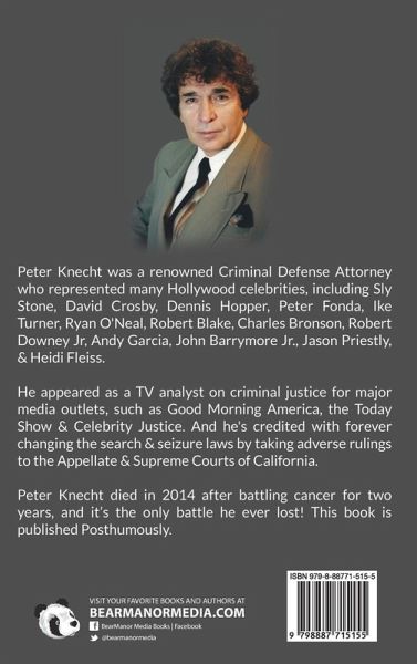 Peter Knecht was a renowned Criminal Defense Attorney who represented many Hollywood celebrities, including Sly Stone, David Crosby, Dennis Hopper, Peter Fonda, Ike Turner, Ryan O'Neal, Robert Blake, Charles Bronson, Robert Downey Jr, Andy Garcia, John Barrymore Jr., Jason Priestly, & Heidi Fleiss. He appeared as a TV analyst on criminal justice for major media outlets, such as Good Morning America, the Today Show & Celebrity Justice. And he's credited with forever changing the search & seizure laws by taking adverse rulings to the Appellate & Supreme Courts of California. Peter Knecht died in 2014 after battling cancer for two years, and it's the only battle he ever lost! This book is published Posthumously.