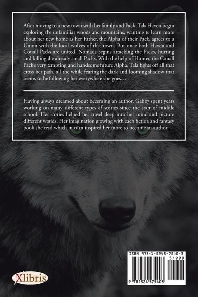 After moving to a new town with her family and pack, Tala Haven begins exploring the unfamiliar woods and mountains, wanting to learn more about her new home as her father, the alpha of their pack, agrees to a union with the local wolves of that town. But once both Haven and Conall packs are united, nomads begin attacking both packs, hurting and killing the already small packs. With the help of Hunter, the Conall pack’s very tempting and handsome future alpha, Tala fights off all that cross her path, all the while fearing the dark and looming shadow that seems to be following her everywhere she goes.