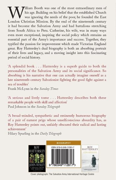 An uneducated youth, William Booth left home in 1849 at the age of twenty to preach the gospel for the New Methodist Connexion. Six years later he founded a new religious movement which succeeded to such a degree that the Salvation Army (which it became) is now a worldwide operation with massive membership. But that is only part of Booth's importance and heritage. In many ways his story is also that of the Victorian poor, as he and his wife Catherine made it their lives' work to battle against the poverty and deprivation which were endemic in the mid- to late 1800s. Indeed, it was Catherine who, although a chronic invalid, inspired the Army's social policy and attitude to female authority. Her campaign against child prostitution resulted in the age of consent being raised and it was Catherine who, dying of cancer, encouraged William to clear the slums -- In Darkest England, The Way Out. Roy Hattersley's masterful dual biography is not just the story of two fascinating lives but a portrait of an integral part of our history.