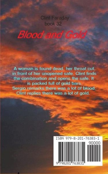 Large print for those whose eyes are as bad as mine An elderly woman is murdered in front of a large safe in her home. Clint finds how to open the safe just as Sergio comes in to say there was a lot of blood on this one. Clint is dstaring into the safe, which was filled with gold bars. He says there was a lot of gold. Where did it come from? How did she get it? She was obviously killed for the combination to that safe, and as obviously didn't tell it. Who? What was her past story?