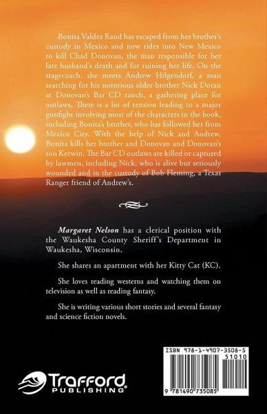 Bonita Valdez Rand has escaped from her brother's custody in Mexico and now rides into New Mexico to kill Chad Donovan, the man responsible for her late husband's death and for ruining her life. On the stagecoach, she meets Andrew Hilgendorf, a man searching for his notorious older brother Nick Doran at Donovan's Bar CD ranch, a gathering place for outlaws. There is a lot of tension leading to a major gunfight involving most of the characters in the book, including Bonita's brother, who has followed her from Mexico City. With the help of Nick and Andrew, Bonita kills her brother and Donovan and Donovan's son Kerwin. The Bar CD outlaws are killed or captured by lawmen, including Nick, who is alive but seriously wounded and in the custody of Bob Fleming, a Texas Ranger friend of Andrew's.