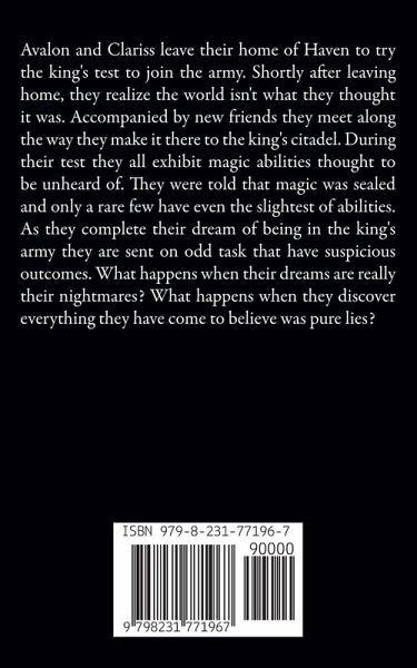 Avalon and Clariss leave their home of Haven to try the king's test to join the army. Shortly after leaving home, they realize the world isn't what they thought it was. Accompanied by new friends they meet along the way they make it there to the king's citadel. During their test they all exhibit magic abilities thought to be unheard of. They were told that magic was sealed and only a rare few have even the slightest of abilities. As they complete their dream of being in the king's army they are sent on odd task that have suspicious outcomes. What happens when their dreams are really their nightmares? What happens when they discover everything they have come to believe was pure lies?
