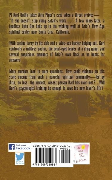 PI Karl Gatlin takes Aria Piper's case when a threat arrives -"if she doesn't stop doing Satan's work..." A few hours later, a headless John Doe bobs up in the wishing well at Aria's New Age spiritual center near Santa Cruz, California. With canine Larry by his side and a wise-ass hacker helping out, Karl confronts a ruthless pastor, the dead-eyed leader of a drug gang, and several suspicious members of Aria's own flock as he hunts for answers. More murders lead to more questions. How could violence on this scale emerge from such a peaceful spiritual community - led by Aria, no less, the kindest, wisest person Karl has ever met? Will Karl's psychologist training be enough to save his new lover's life?